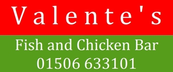 * Valente's Fish and Chicken Bar is located at 9 George Street, Bathgate just opposite 'The Steelyard'.