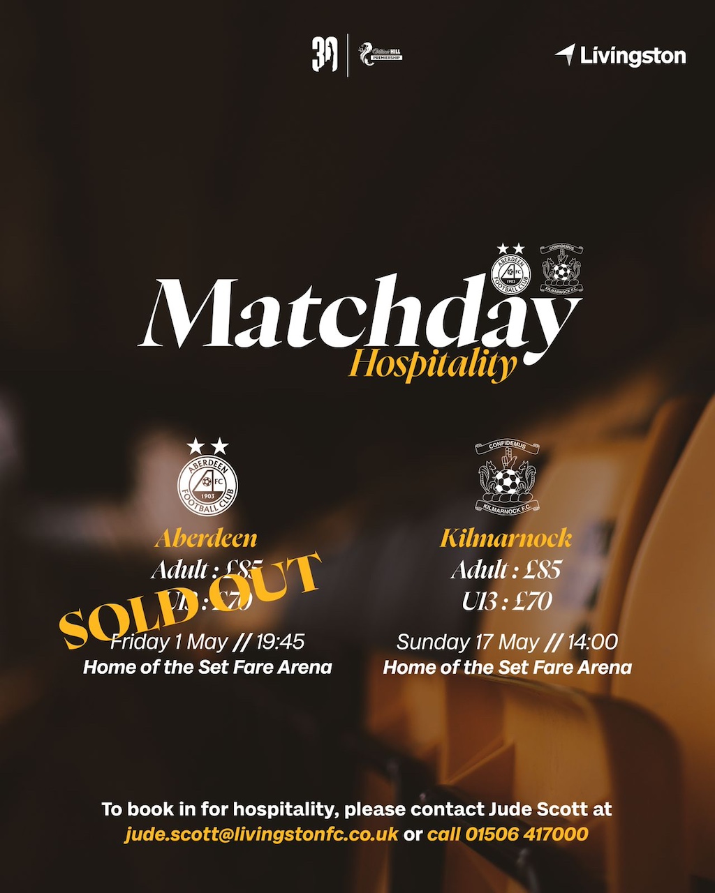 To book in, please contact Jude Scott on jude.scott@livingstonfc.co.uk or 01506417000 and we can help with any questions or queries you may have.