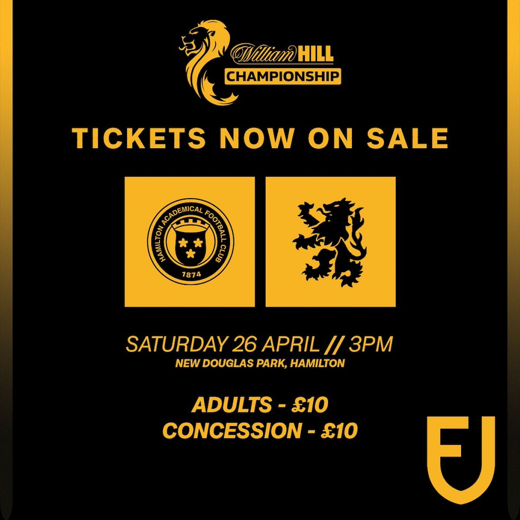 Tickets for Saturday’s trip to take on Hamilton in our final away game of the league campaign are now on sale online.